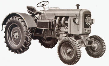 Motor: 38 - 45 PS, 2 oder 3-Zylinder Eicher-Diesel-Viertakt-Motor, lufgekühlt.
